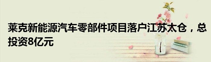 莱克新能源汽车零部件项目落户江苏太仓,总投资8亿元