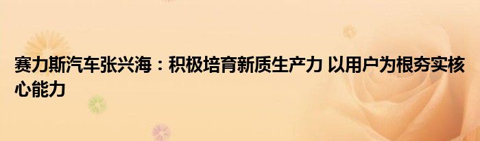 赛力斯汽车张兴海:积极培育新质生产力 以用户为根夯实核心能力