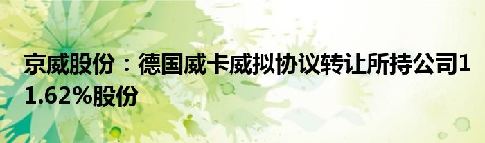 京威股份:德国威卡威拟协议转让所持公司11.62%股份