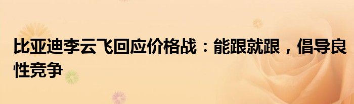 比亚迪李云飞回应价格战:能跟就跟,倡导良性竞争