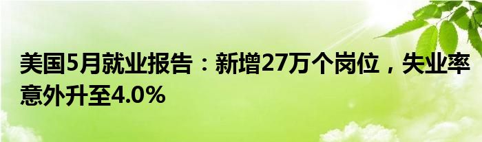 美国5月就业报告:新增27万个岗位,失业率意外升至4.0%