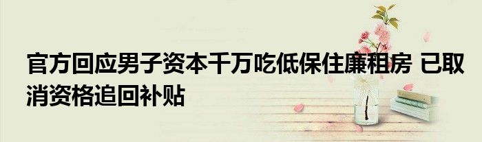 官方回应男子资本千万吃低保住廉租房 已取消资格追回补贴