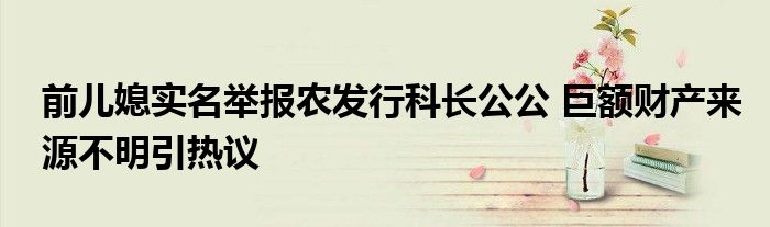 前儿媳实名举报农发行科长公公 巨额财产来源不明引热议