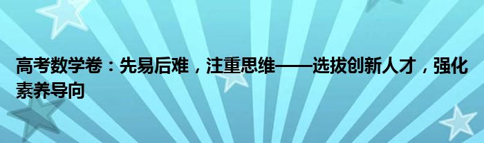 高考数学卷:先易后难,注重思维——选拔创新人才,强化素养导向