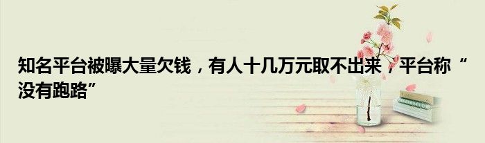 知名平台被曝大量欠钱,有人十几万元取不出来,平台称“没有跑路”