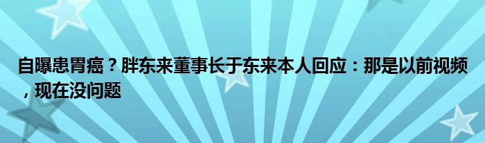 自曝患胃癌?胖东来董事长于东来本人回应:那是以前视频,现在没问题