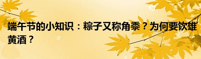 端午节的小知识:粽子又称角黍?为何要饮雄黄酒?