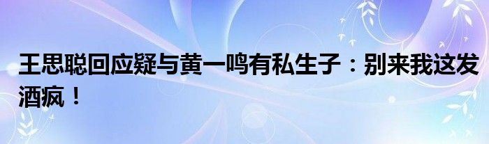 王思聪回应疑与黄一鸣有私生子:别来我这发酒疯!