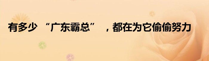 有多少 “广东霸总” ,都在为它偷偷努力
