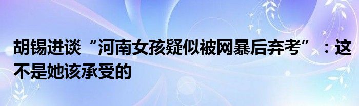 胡锡进谈“河南女孩疑似被网暴后弃考”:这不是她该承受的