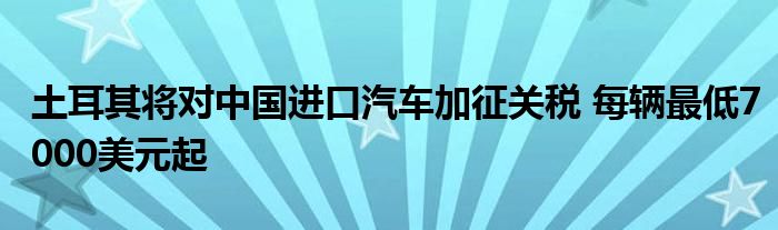土耳其将对中国进口汽车加征关税 每辆最低7000美元起