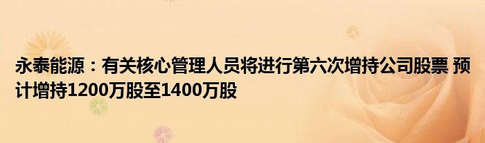永泰能源公告,公司有关核心管理人员在前五次增持公司股票基础上,将进行第六次增持公司股票,预计本次增持公司股票总数量在1,200万股至1,400万股之间。