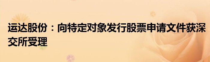 运达股份:向特定对象发行股票申请文件获深交所受理