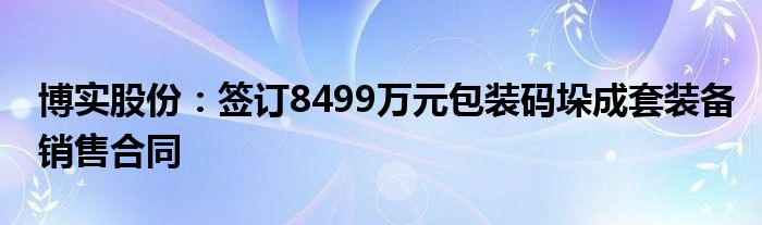 博实股份:签订8499万元包装码垛成套装备销售合同