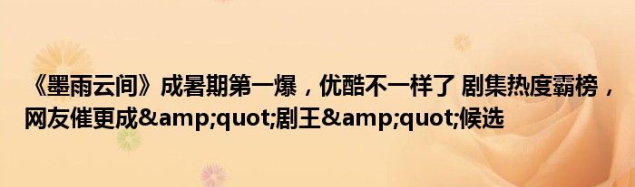 《墨雨云间》成暑期第一爆,优酷不一样了 剧集热度霸榜,网友催更成"剧王"候选