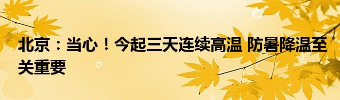 北京:当心!今起三天连续高温