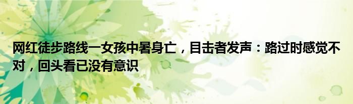 网红徒步路线一女孩中暑身亡,目击者发声:路过时感觉不对,回头看已没有意识