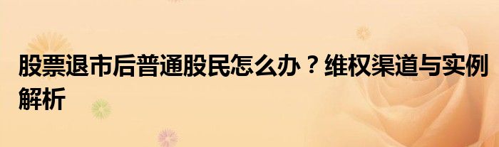 股票退市后普通股民怎么办?维权渠道与实例解析