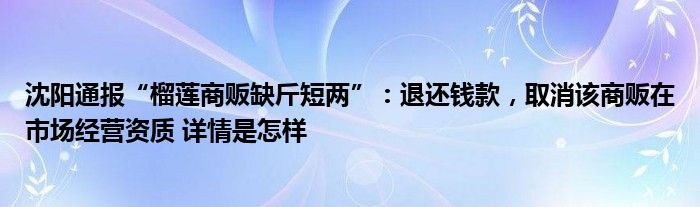【沈阳通报“榴莲商贩缺斤短两”:退还钱款,取消该商贩在市场经营资质】大家可以一起来了解一下这是什么情况!