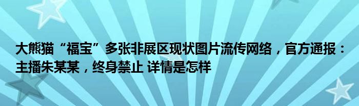 【大熊猫“福宝”多张非展区现状图片流传网络,官方通报:主播朱某某,终身禁止】大家可以一起来了解一下这是什么情况!