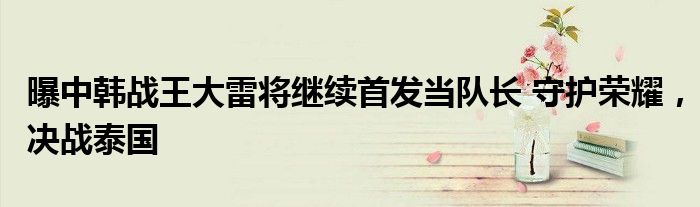 曝中韩战王大雷将继续首发当队长 守护荣耀,决战泰国