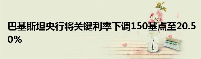 巴基斯坦央行将关键利率下调150基点至20.50%
