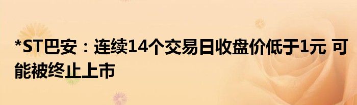 *ST巴安:连续14个交易日收盘价低于1元 可能被终止上市