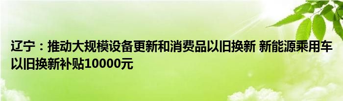 辽宁:推动大规模设备更新和消费品以旧换新 新能源乘用车以旧换新补贴10000元