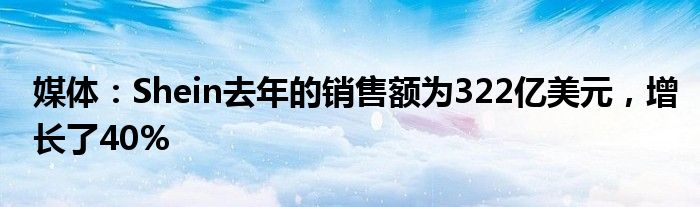 媒体:Shein去年的销售额为322亿美元,增长了40%