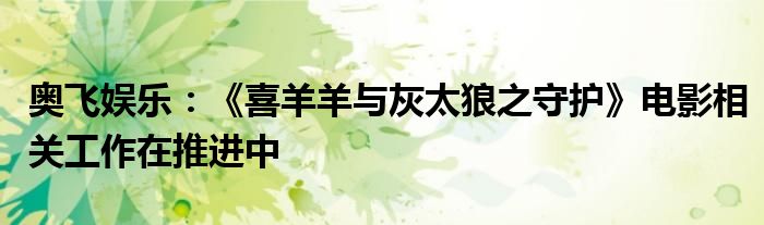 奥飞娱乐:《喜羊羊与灰太狼之守护》电影相关工作在推进中