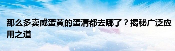 那么多卖咸蛋黄的蛋清都去哪了?揭秘广泛应用之道