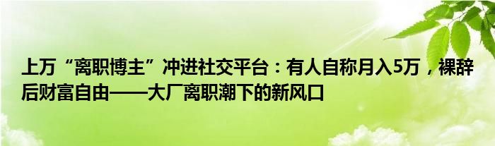 上万“离职博主”冲进社交平台:有人自称月入5万,裸辞后财富自由——大厂离职潮下的新风口