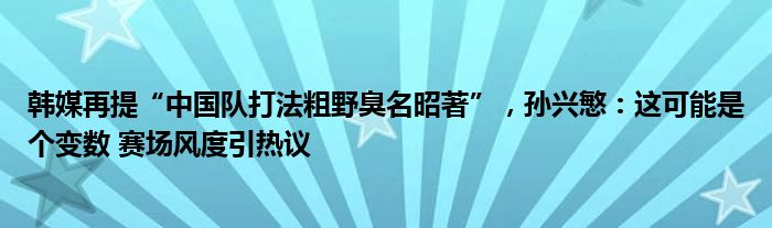 韩媒再提“中国队打法粗野臭名昭著”,孙兴慜:这可能是个变数 赛场风度引热议
