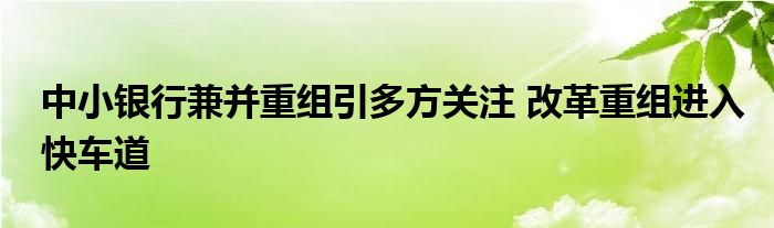 中小银行兼并重组引多方关注 改革重组进入快车道