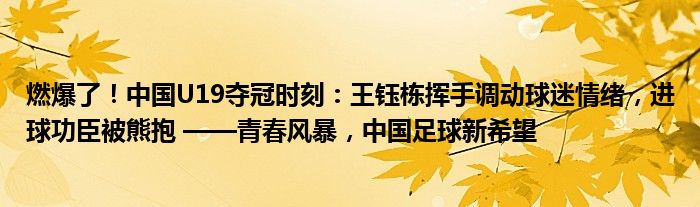 燃爆了!中国U19夺冠时刻:王钰栋挥手调动球迷情绪,进球功臣被熊抱 ——青春风暴,中国足球新希望