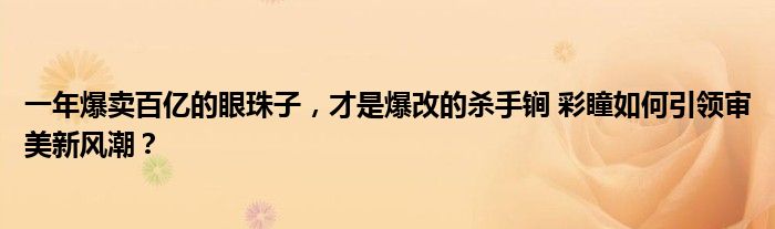 一年爆卖百亿的眼珠子,才是爆改的杀手锏 彩瞳如何引领审美新风潮?