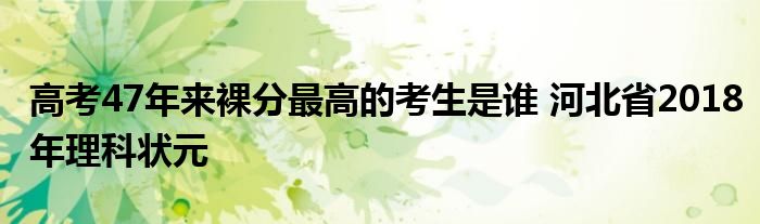 高考47年来裸分最高的考生是谁 河北省2018年理科状元