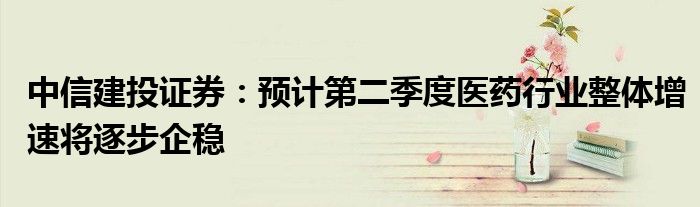 中信建投证券:预计第二季度医药行业整体增速将逐步企稳