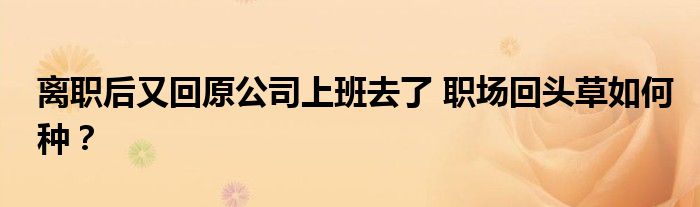 离职后又回原公司上班去了 职场回头草如何种?