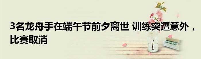 3名龙舟手在端午节前夕离世 训练突遭意外,比赛取消
