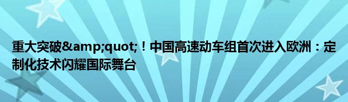 重大突破"!中国高速动车组首次进入欧洲:定制化技术闪耀国际舞台