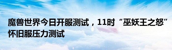 魔兽世界今日开服测试,11时“巫妖王之怒”怀旧服压力测试