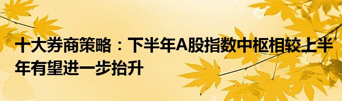 十大券商策略:下半年A股指数中枢相较上半年有望进一步抬升