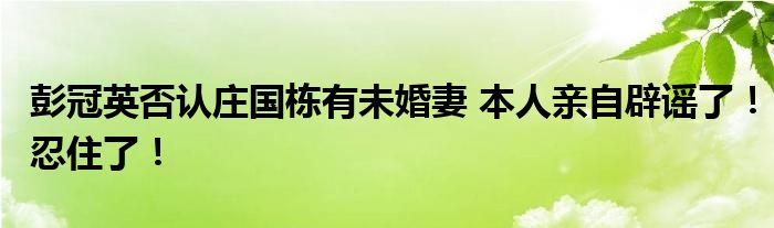 彭冠英否认庄国栋有未婚妻 本人亲自辟谣了!忍住了!