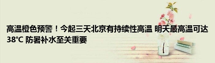 高温橙色预警!今起三天北京有持续性高温 明天最高温可达38℃ 防暑补水至关重要