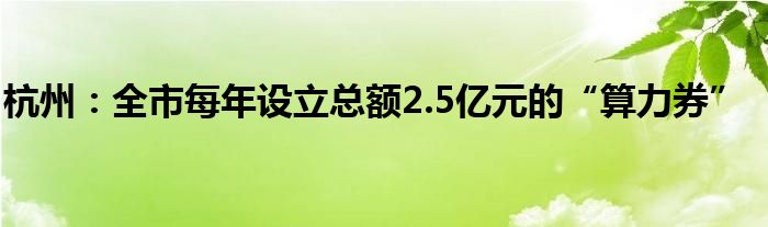 杭州:全市每年设立总额2.5亿元的“算力券”