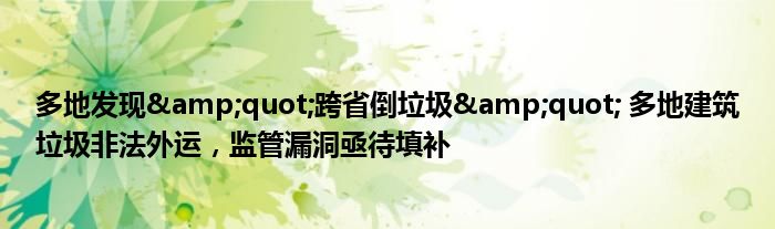 多地发现"跨省倒垃圾" 多地建筑垃圾非法外运,监管漏洞亟待填补