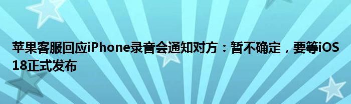 苹果客服回应iPhone录音会通知对方:暂不确定,要等iOS18正式发布