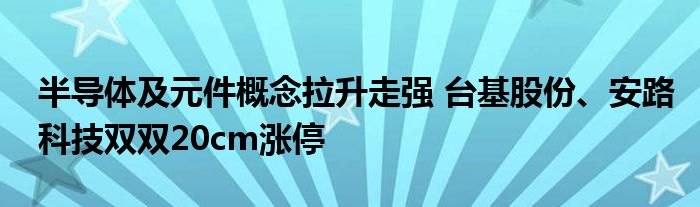 半导体及元件概念拉升走强,台基股份、安路科技双双20cm涨停,此前上海贝岭、协和电子涨停,生益电子、纳芯微、芯源微、江丰电子等快速跟涨。