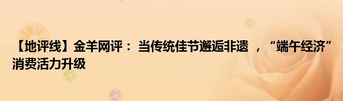 【地评线】金羊网评: 当传统佳节邂逅非遗 ,“端午经济”消费活力升级